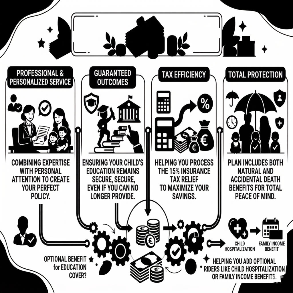 • Guaranteed Outcomes: I focus on ensuring that your child’s education remains secure even if you are no longer there to provide for them.