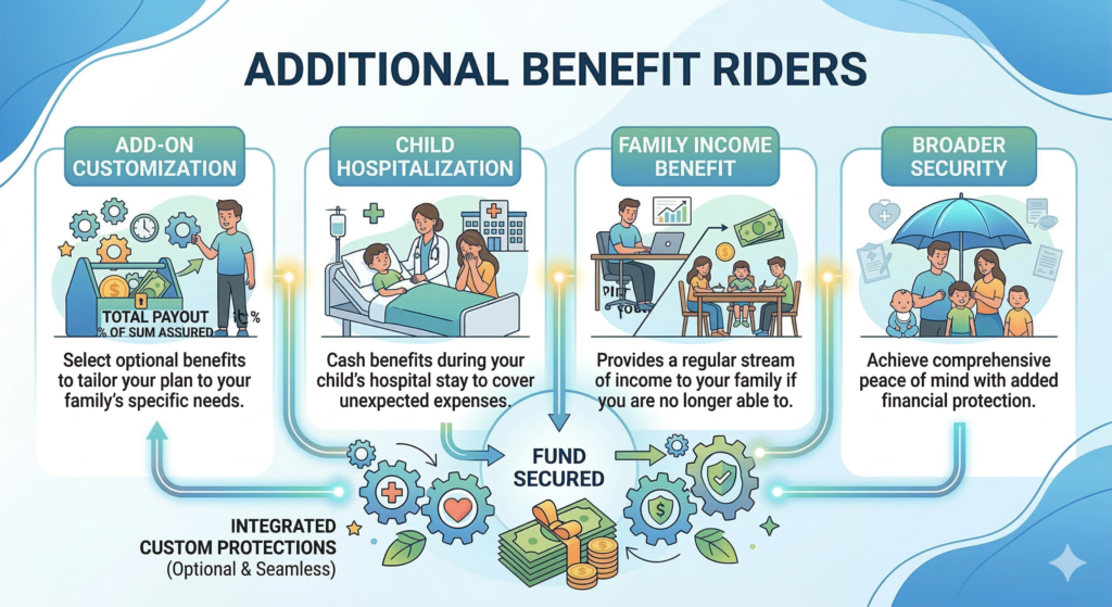 You can customize your plan with optional add-ons like  a Family Income Benefit. These slightly adjust the premium but provide much broader financial security.
